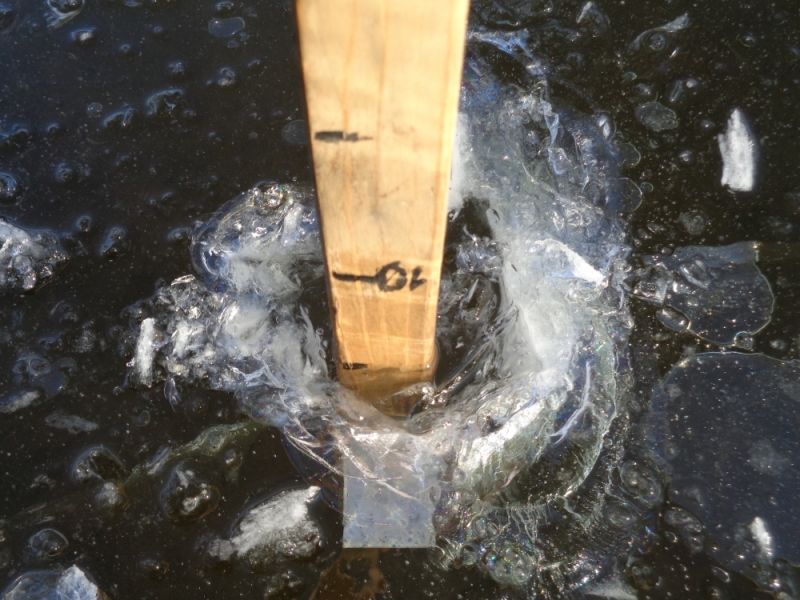 Если рыбаки все-таки рискуют и выходят на молодой лед, у них должны быть необходимые приспособления, которые в случае опасности помогут им сохранить жизнь. Желательно иметь с собой пешню – палку с тяжелым металлическим наконечником, которым можно пробовать пробивать лед перед собой и запас веревки в 10-15 метров. И конечно же, стараться не выходить на лед по одиночке.