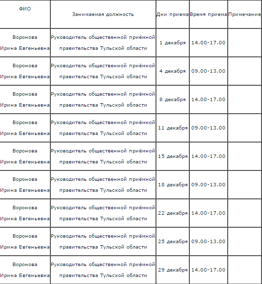Стал известен график приема общественной приемной Тульской области в городе Донской.