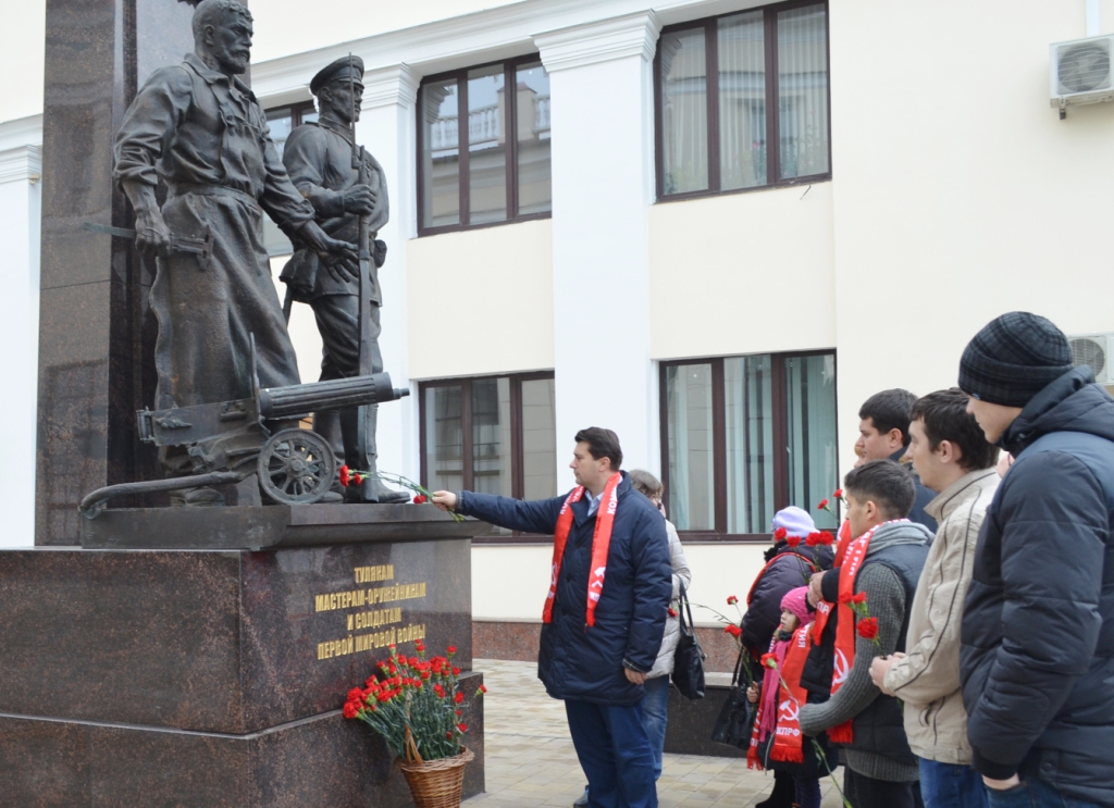 Тульские коммунисты накануне почтили память погибших фронтовиков во время Первой мировой войны. Депутат Государственной Думы, член ЦК КПРФ, первый секретарь обкома партии Олег Лебедев вместе с коллегами возложил цветы к памятнику.