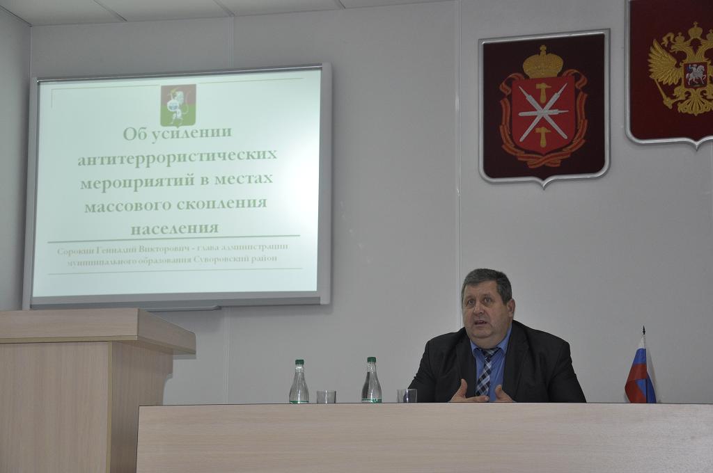 ИА «Тульская пресса» уже писало, что 23 ноября на заседании антитеррористической комиссии Суворовского района глава райадминистрации Геннадий Сорокин напомнил членам комиссии о персональной ответственности за выполнение антитеррористических мероприятий на вверенных территориях.
