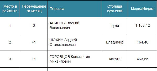 Авилов сохранил лидерство в медиарейтинге глав администраций ЦФО