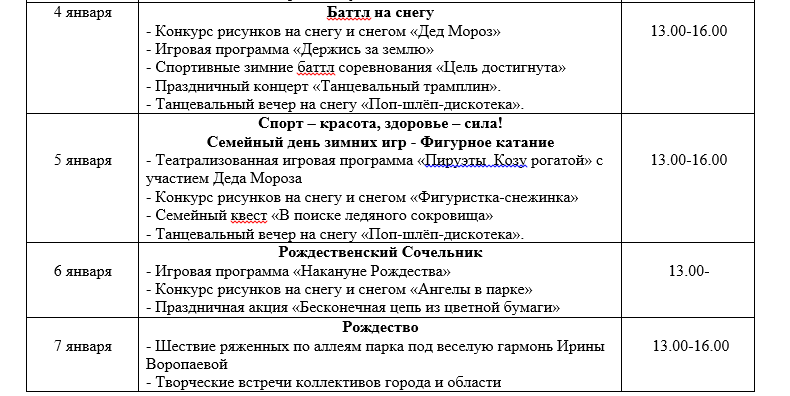 Обширную праздничную программу подготовили горожанам и гостям города тульские парки. ИА «Тульская пресса» публикует план новогодних и рождественских торжеств в Комсомольском парке города. Праздничную программу предоставила Варвара Трунова, специалист по связям с общественностью ГУ ТО «Тульские парки».