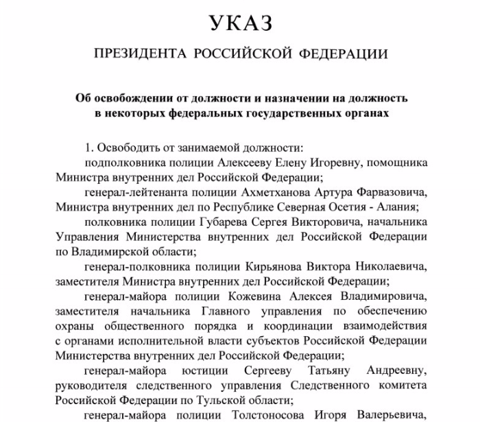 Указ Президента РФ Владимира Путина №616 «Об освобождении от должности и назначения на должность в некоторых федеральных государственных органах» опубликован 11 декабря.