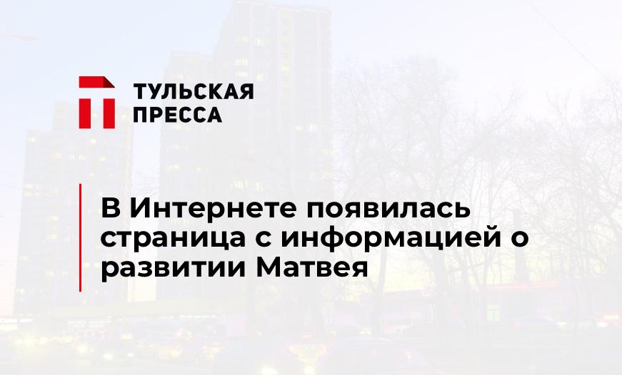 В Интернете появилась страница с информацией о развитии Матвея