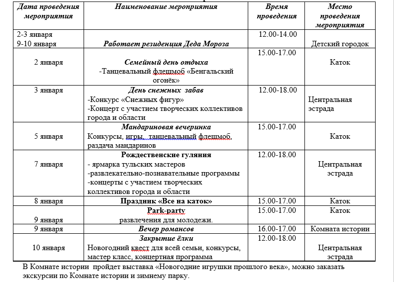 ЦПКиО приглашает туляков на новогодние и рождественские гуляния