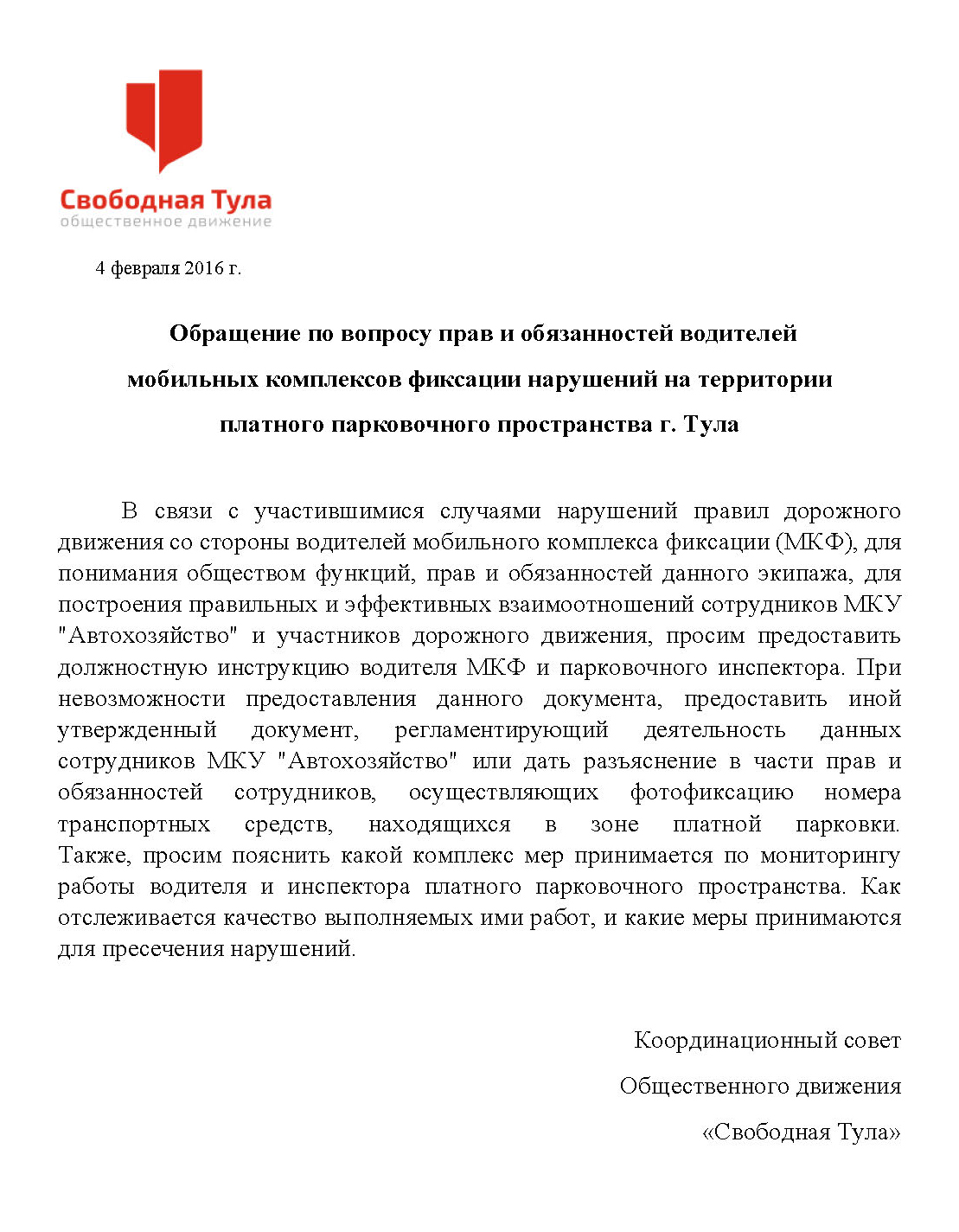 «Общественное движение «Свободна Тула», не упускает из виду ситуацию с соблюдением правил дорожного движения инспекторами мобильной службы фотофиксации и других должностных лиц при исполнении, и в ближайшее время будет опубликован ответ МКУ «Автохозяйство», на поступивший запрос общественников», — прокомментировал на своей личной странице в «Вконтакте» координатор движения Ярослав Муравский.