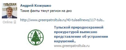 В противном случае, поскольку в экологическом рейтинге субъектов РФ один из крайне отрицательных индексов Тульского региона — АТМОСФЕРА, и если нашим контрольно-надзорным органам не начать делать всё, что только можно для того, чтобы её как минимум не ухудшать, индексы «атмосфера» и «ответственность власти» резко пойдут вниз, усугубляя положение нашего региона в статусе аутсайдера рейтинга», — дал свое заключение Андрей Кожушко.
