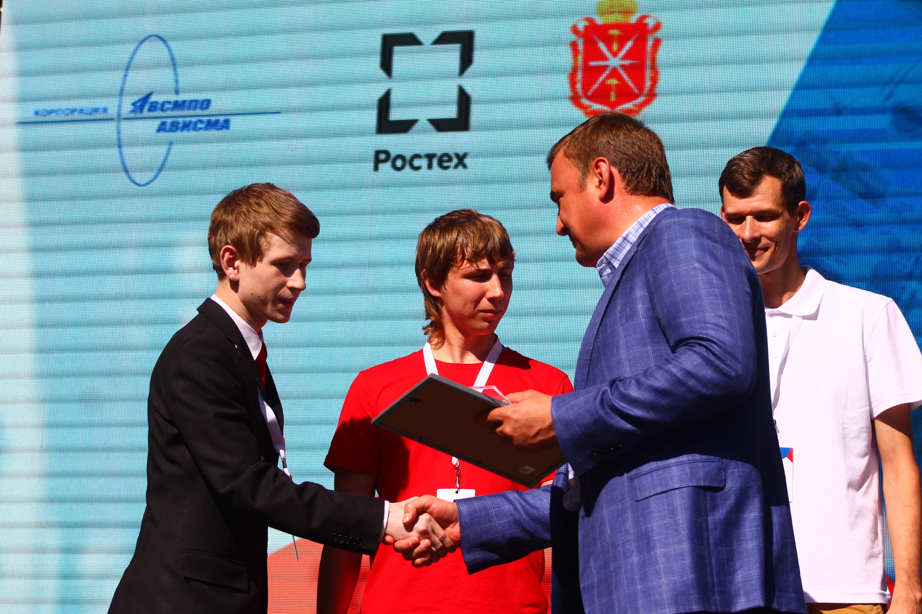 Глава региона Алексей Дюмин, индустриальный директор электронного кластера Ростеха Сергей Куликов и член совета директоров ВСМПО-Ависма Михаил Шелков поздравили чемпионов и вручили им памятные подарки.