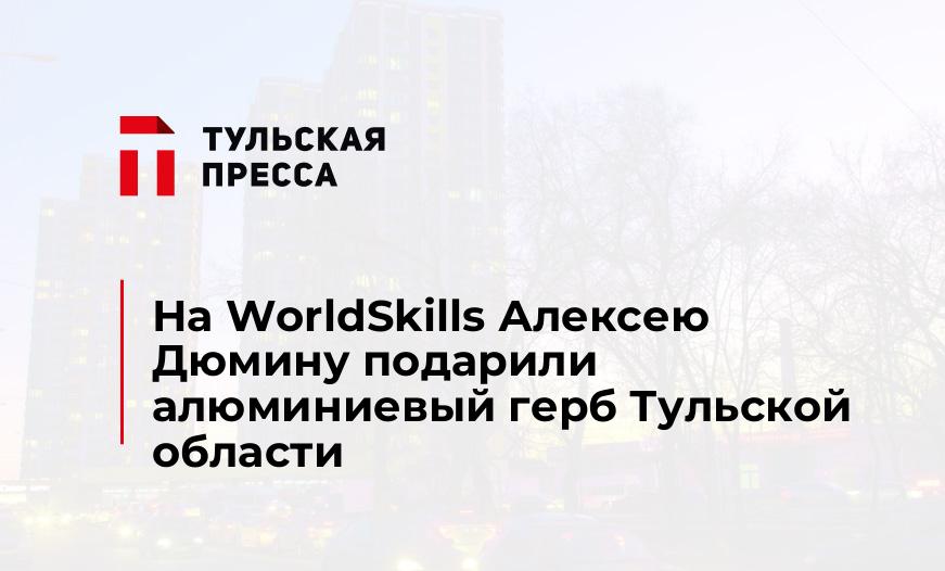 Участник чемпионата рабочих профессий ГК «Ростех» «Молодые профессионалы» по стандартам WorldSkills подарил врио губернатора Алексею Дюмину герб Тульской области, выточенный из алюминия на фрезерном станке.