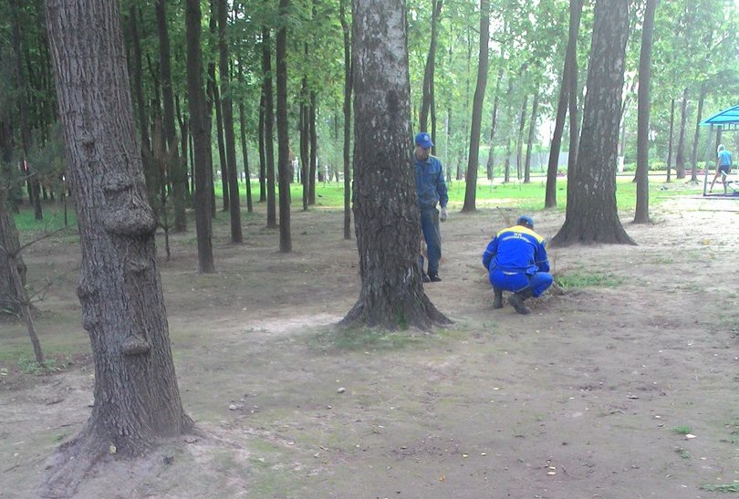 «9 мая в торжественной обстановке сажали эти сосенки… И вот, не прошло и полугода, как их рубят работники Комсомольского парка!»