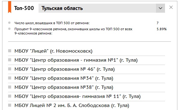 Семь образовательных организаций Тульской области вошли в топ-500 лучших школ России, сообщает ria.ru.