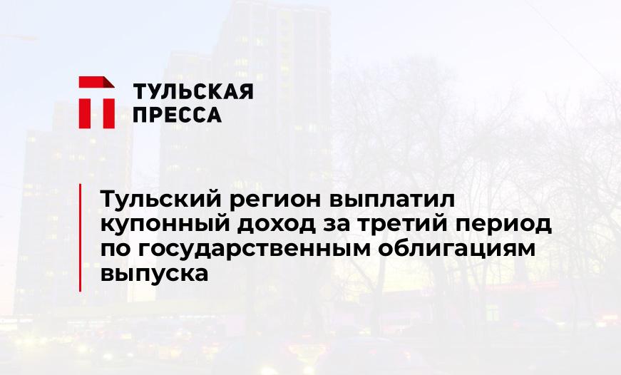 27 октября регион выплатил купонный доход за 3-й купонный период по государственным облигациям Тульской области выпуска 2015 года (регистрационный номер RU34004TUL0).