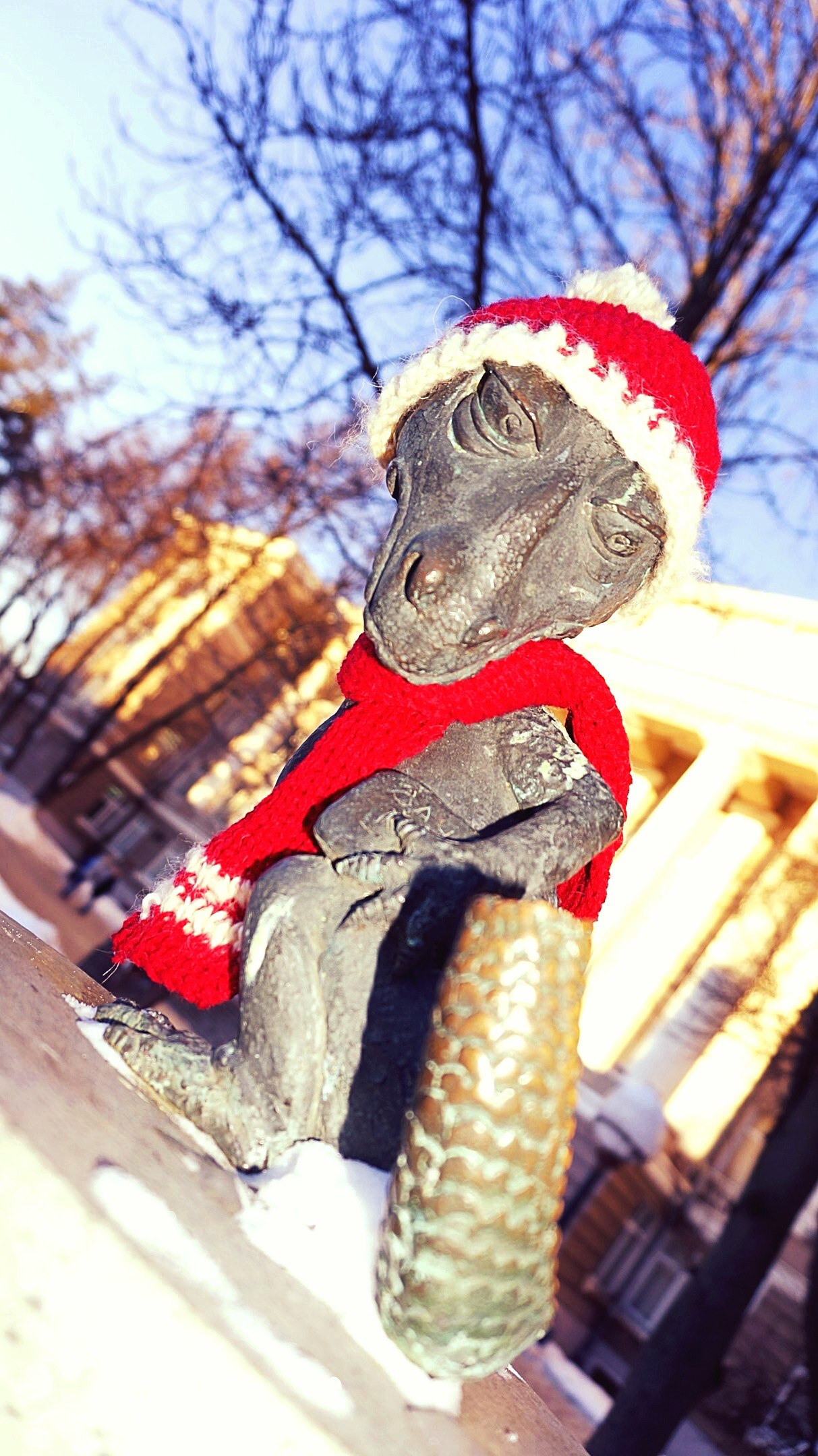 Бабушка одного из тульских студентов связала для знаменитого памятника «Хвосту» шапочку и шарфик, сообщается в одном из пабликов ТулГУ в соцсетях.