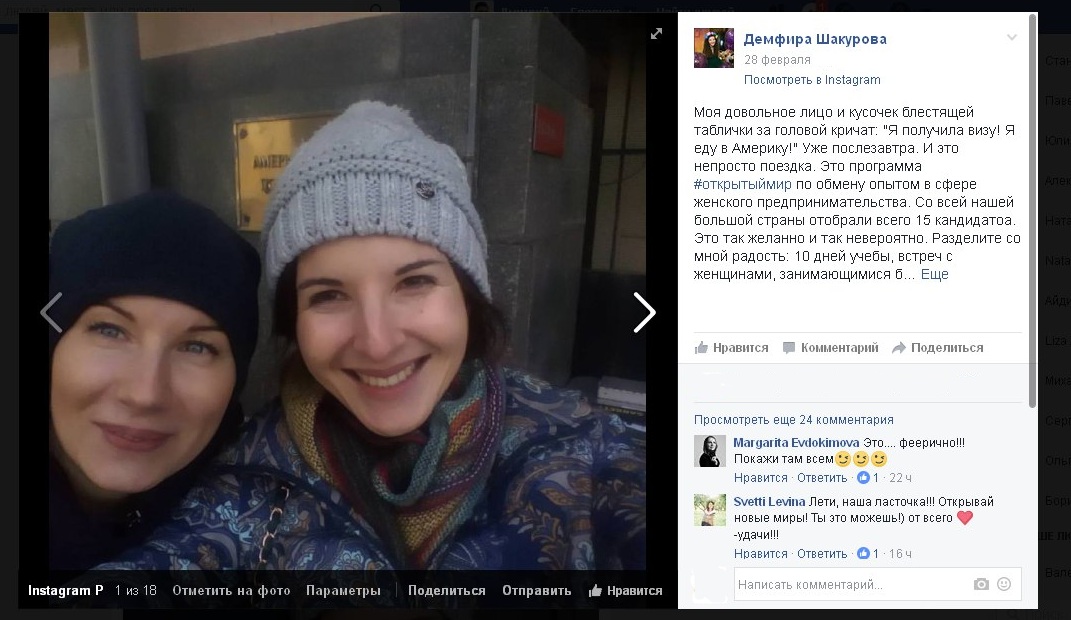 Как сообщила Демфира в своих профилях в соцсетях, она вошла в число 15 россиян, которые посетят Соединенные Штаты по программе обмена опытом в сфере женского предпринимательства.