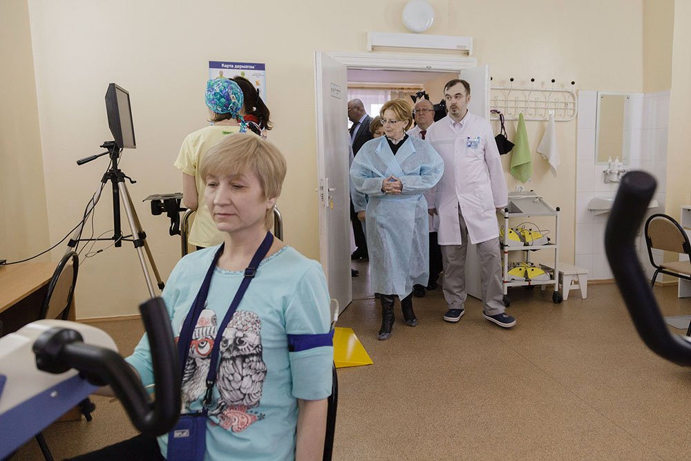 Центр укомплектован необходимым медицинским оборудованием и лекарствами. Министр осмотрела отделение интенсивной терапии, тренажерный зал для занятий ЛФК и кабинет логопеда, где занимаются реабилитацией пациентов, перенесших инсульт.
