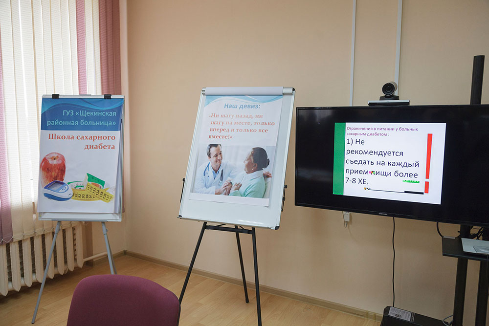 А также здесь проходят занятия для больных сахарным диабетом. Министр посетила лично один из таких уроков здоровья.