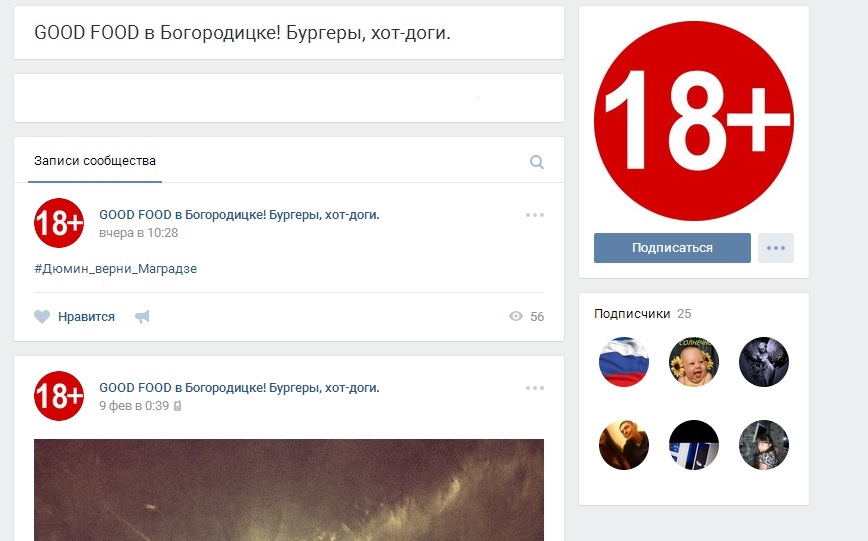 Пока среди сочувствующих Маградзе, судя по поиску хэштега ВК, только одна группа —  «GOOD FOOD в Богородицке! Бургеры, хот-доги», на стене которой это практически единственная запись, а на аватарке почему-то указан значок «18+».