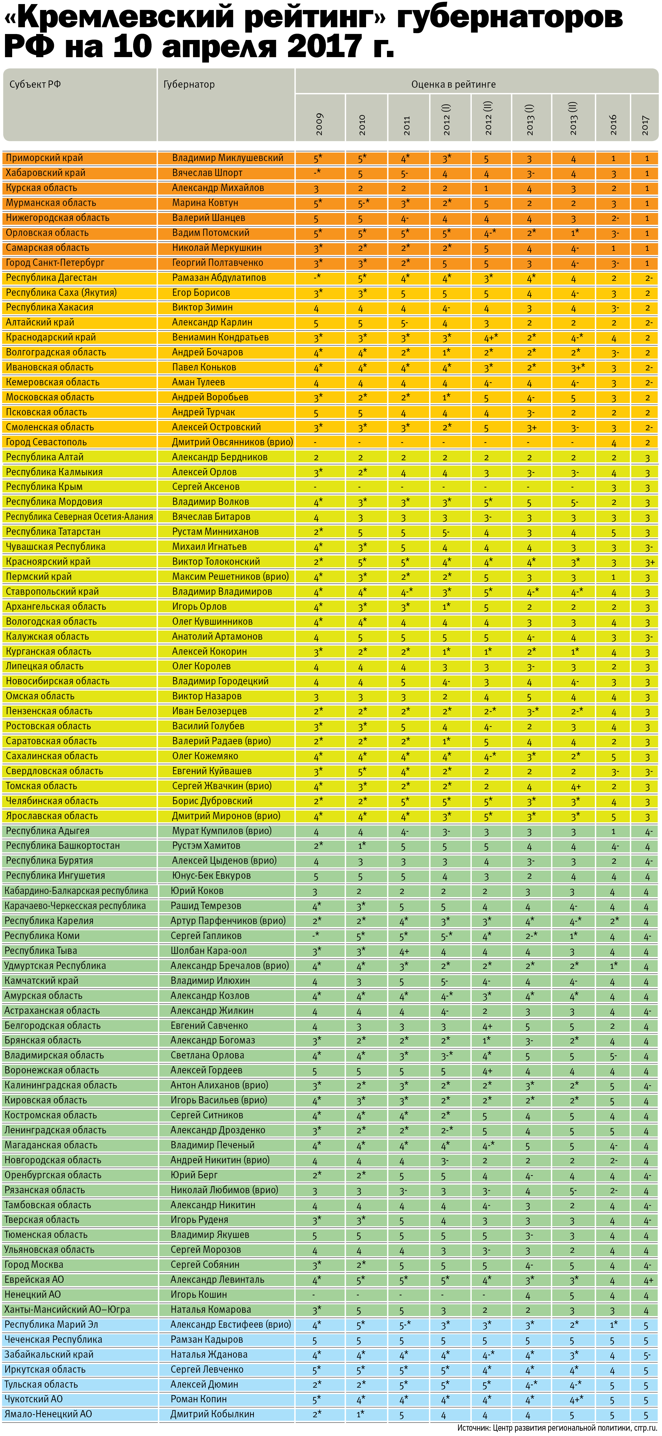 Журнал «Профиль» опубликовал «Кремлевский рейтинг» губернаторов.