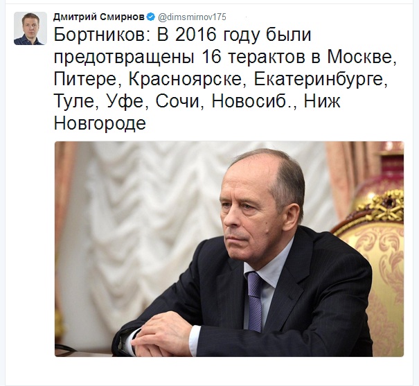 Глава ФСБ России Александр Бортников сообщил, что в 2016-м году предотвратили теракты в нескольких городах страны, в том числе и в Туле.