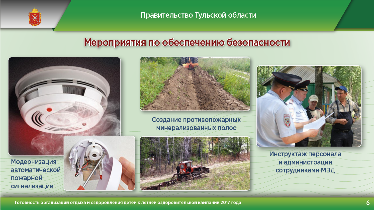 Уделено внимание таким аспектам как модернизации пожаробезопасной системы, обработки территорий от вредных насекомых, проверка целостности ограждений.