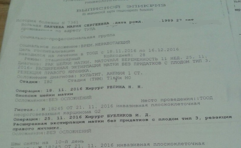 Тулячке Марии Панчевой 28 лет, у нее уже есть маленький ребенок, а в этом году должен был родиться и второй малыш, но, к несчастью, вместо материнства, девушки пришлось столкнуться с ужасным событием – у нее обнаружили рак шейки матки.