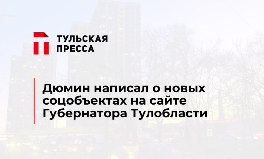 Дюмин написал о новых соцобъектах на сайте Губернатора Тулобласти