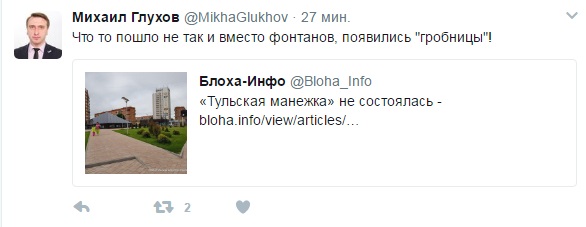 Представитель народа, сопредседатель штаба Тульского ОНФ, член Правления и Председатель ТРО ОПОРА РОССИИ, Президент РОР «ОПОРа МСП ТО» Владимир Глухов прокомментировал в своем твиттере письмо жителей губернатору касательной сквера «манежки».