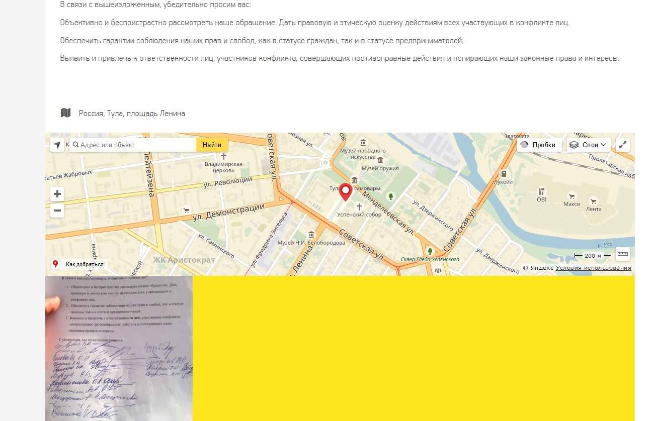Туляки сообщают, что их бизнесу и семьям стали угрожать расправой. Как считают авторы обращения, за этим стоят депутат Суханов и директор ООО «Луч» Симонова.