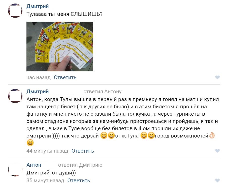 ИА «Тульская пресса» отмечало, что сейчас полиция готовится к приезду фанатов «Спартака» и обеспечению порядка на матче. Москвичам была выделена установленная регламентом гостевая квота, сообщалось, что все 2000 билетов уже раскуплены.
