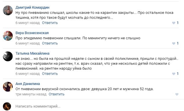 Жители города обсуждают в соцсетях информацию об эпидемии менингита и пневмонии среди туляков.
