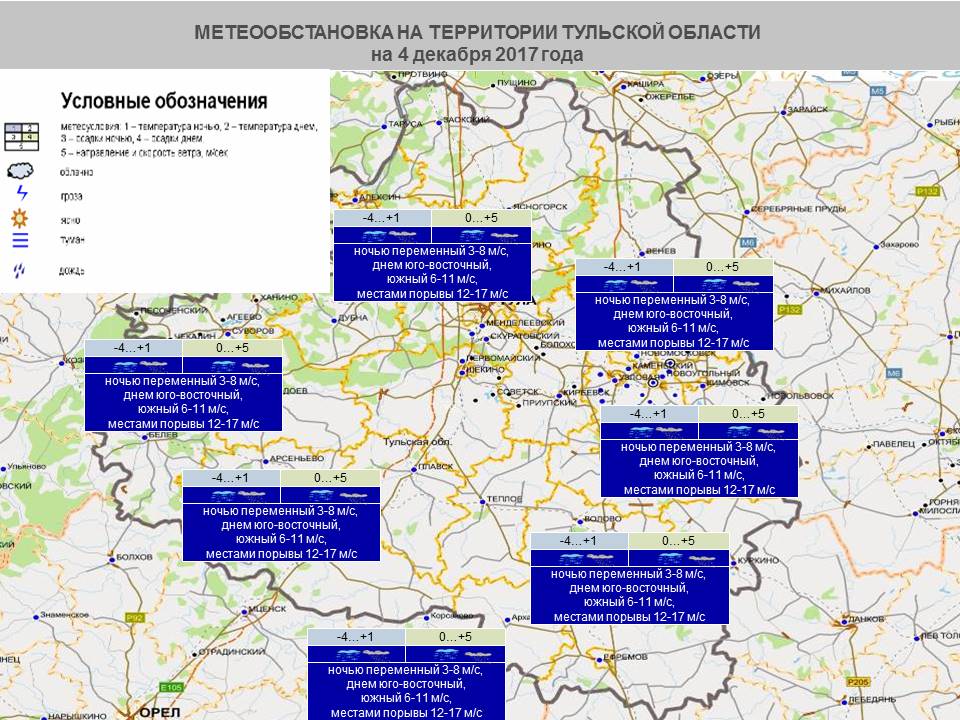 ИА «Тульская пресса» публикует прогноз погоды на 4 декабря, предоставленный пресс-службой регионального МЧС.
