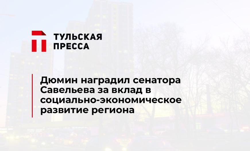 В Указе говорится, что член Совета Федерации от Тульской области Дмитрий Савельев награжден «за достижение значимых результатов в государственной и общественной сферах деятельности, большой вклад в социально-экономическое развитие Тульской области».