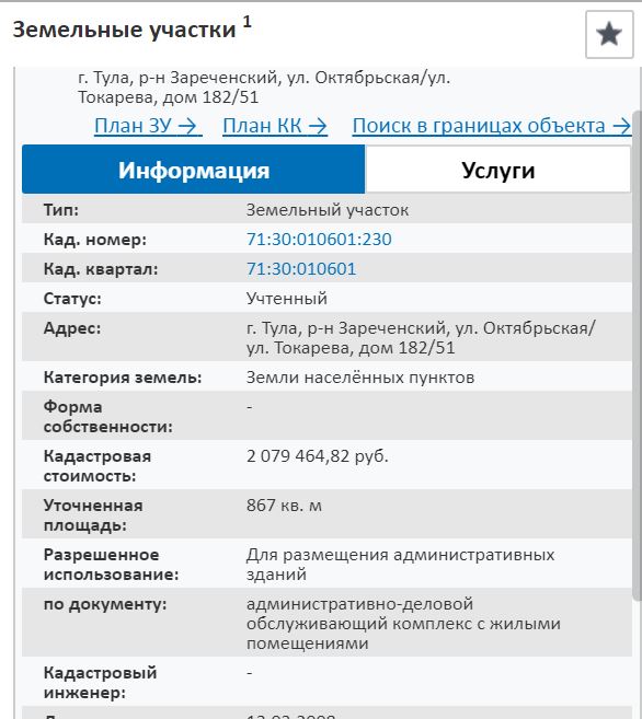 По данным кадастровой карты (выписку из которой нам так настойчиво советовал заказать хозяин здания Юрий Дели), постройка располагается на земле, предназначенной для размещения административных зданий. Сама постройка характеризуется, как «административно-деловой обслуживающий комплекс с жилыми помещениями».