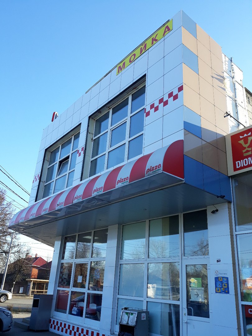 Понять это можно, прочитав на сайте справочника перечень услуг, которые предлагаются автомобилистам, а также по двум вывескам с надписью «Мойка», которые находятся над помещением пиццерии. Точно такие же, кстати, раньше висели и на дверях автосервиса, но почему хозяева их решили снять.