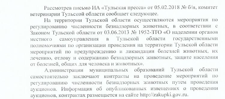 «В настоящее время наша организация не работает по программе ОСВ и отловом безнадзорных животных не занимается», — сообщили «Тульской прессе» в организации в ответ на запрос.