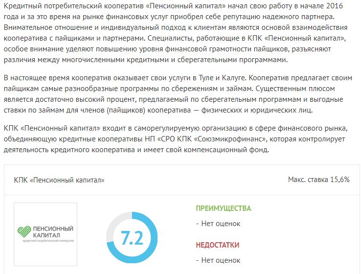 Так что же произошло с самой организацией? На одном из справочных сайтов по микрокредитным организациям эту фирму усиленно нахваливают, называя «надежным и хорошо зарекомендовавшим себя партнером». Известно, что у КПК «Пенсионный капитал» есть несколько офисов в других городах, например, в Калуге. Работают они или нет – не известно, однако сайт, который сейчас недоступен, у этих филиалов один на всех.