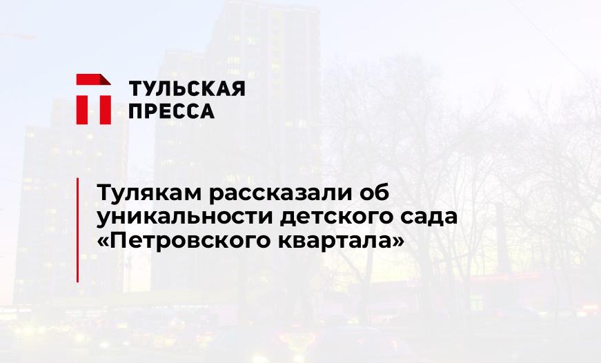 Новый детский сад в Привокзальном округе Тулы уникален, считают представители застройщика. Как отмечало ИА «Тульская пресса», 2-этажное детское дошкольное учреждение построено в микрорайоне Петровский.