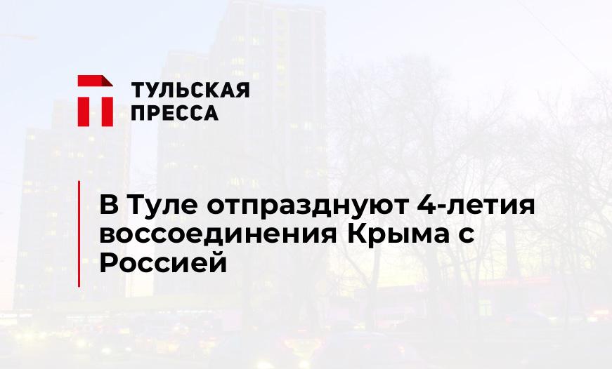 Праздничные мероприятия к годовщине воссоединения Крыма с Россией пройдут в Туле 18 марта. Как отмечало ИА «Тульская пресса», с 20-00 на площади Ленина начнется программа «Россия в моем сердце».