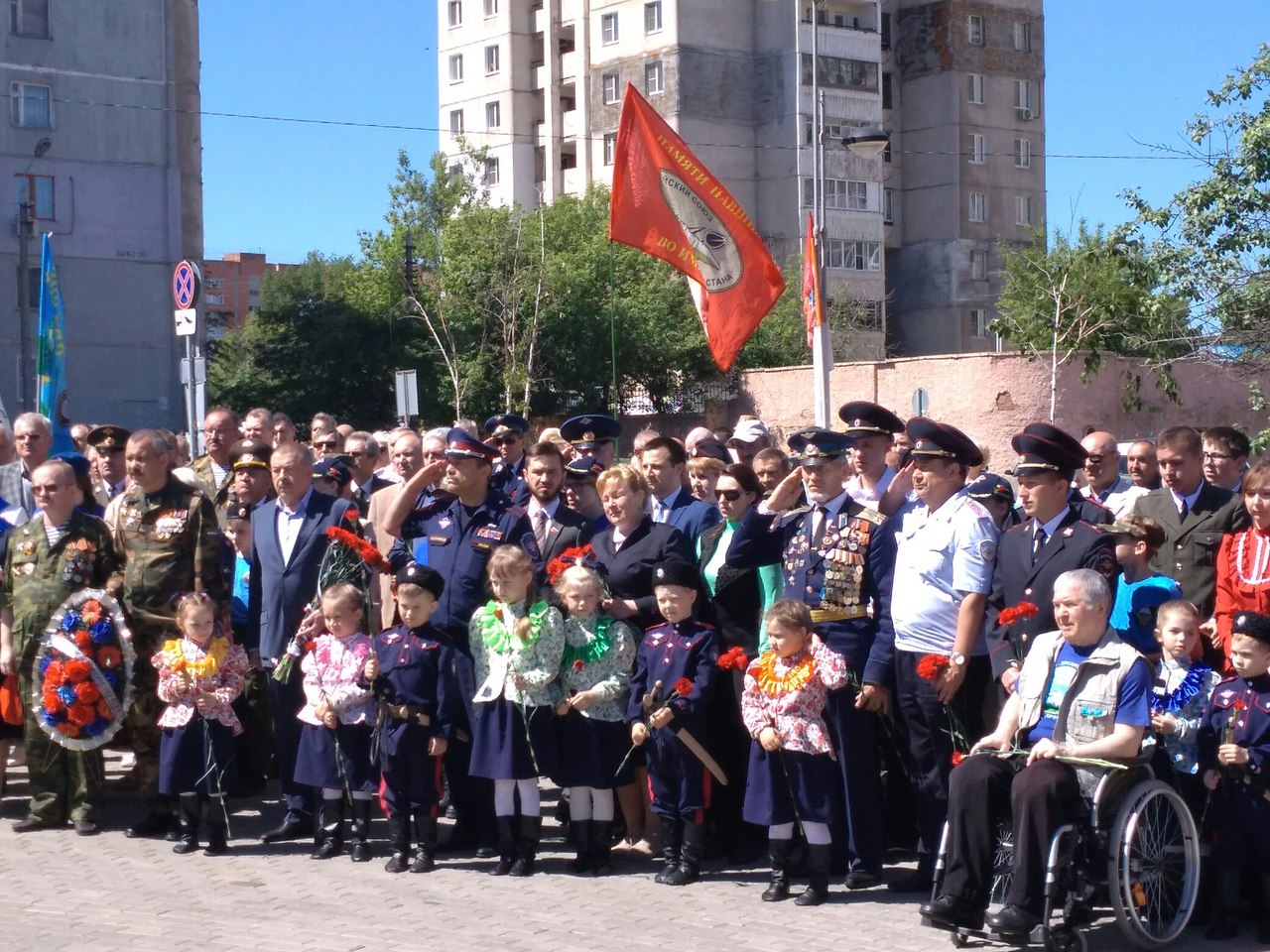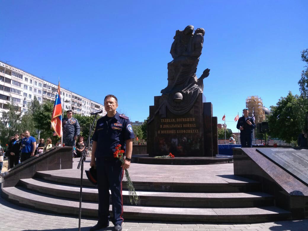 Была объявлена минута молчания в память о погибших участниках локальных войн и военных конфликтов. Прозвучал трехкратный залп оружейного салюта под звуки Гимна России. Затем состоялась церемония возложения цветов к монументу.