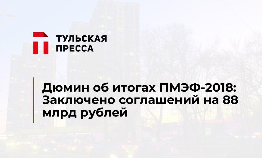 «С 24 по 26 мая делегация Тульской области принимала достойное участие в ПМЭФ. Для региона прошедший форум стал результативным. Заключено соглашений на 88 млрд рублей. В прошлом году было подписано соглашений больше, но сумма инвестиций была меньше — 83 млрд рублей», — подчеркнул тульский Губернатор.