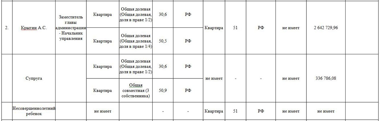 Судя по отчетности, ни сам Крыгин, ни его супруга личным автомобилем не пользуются, зато имеют несколько квартир. За год же Крыгин сумел заработать порядка 2,6 млн рублей.