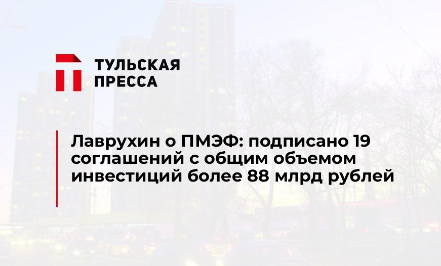 Тульская делегация посетила ПМЭФ, который проходил с 24 по 26 мая. Проведена огромная работа по выстраиванию деловых взаимоотношений с рукводством российских и иностранных компаний. Подписали 19 соглашений с общим объемом инвестиций более 88 млрд рублей.
