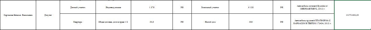 Депутат, многодетная мать Наталия Сарганова сообщила, что за год ее доход составил 6 272 602,53 рублей. У Саргановой 14 несовершеннолетних детей. Семья также владеет микроавтобусом Hyundai н1 и грузовой платформой с каркасом и тентом.