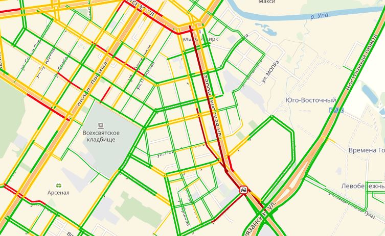 В соцсетях сообщают, что улица Оборонная стоит в пробке из-за аварии.
