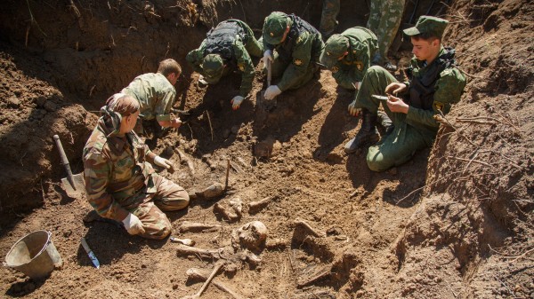 В преддверии Дня памяти и скорби лидер партии «Справедливая Россия» Сергей Миронов посетил Киреевский район Тульской области, где поисковики отряда «Штурм» под руководством Михаила Булдакова эксгумируют останки бойцов РККА, погибших во время Тульской оборонительной операции 1941 года.
