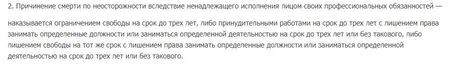Напомним, мужчина обвиняется в причинении смерти по неосторожности своей пациентке — Ирине Соповой. В ходе расследования было установлено, что хирург, выполняя лапароскопическую операцию по удалению опухоли, повредил стенку прямой кишки. Это привело к развитию перитонита, а в следствии и тромбоэмболии легочной артерии, от чего женщина скончалась.  У неё остались 13-летняя дочка и муж.