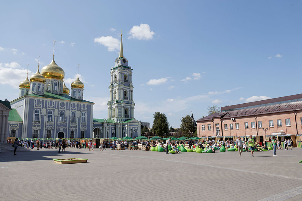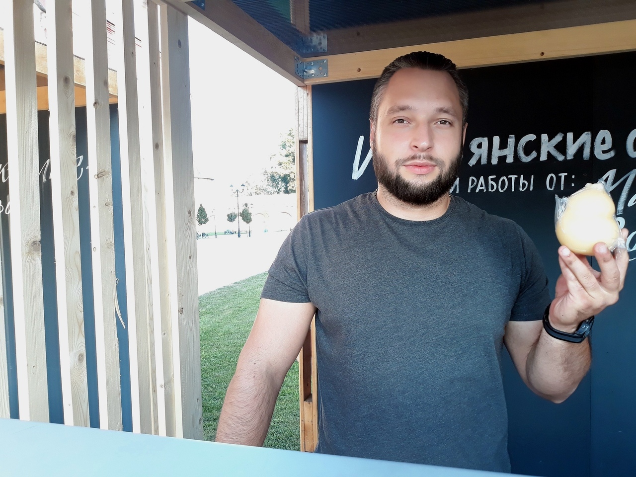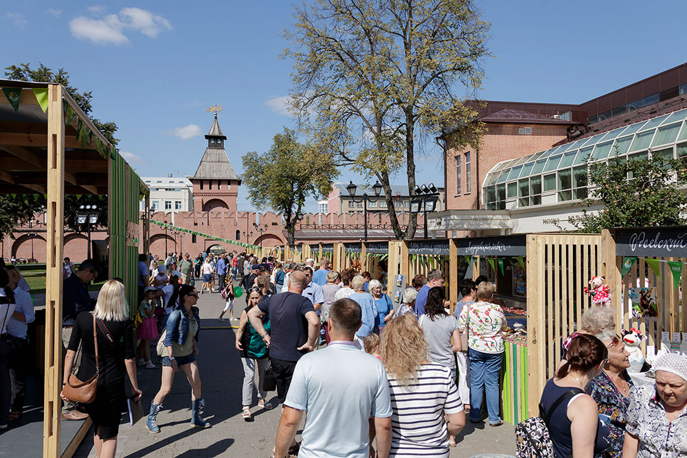 На большой кремлевской площади толпы народа: здесь и мамы с шумными детишками, и рачительные хозяйки, и молодежь на стиле, которая пришла за «бургерами и лимонадами». Все не спеша, под выгорающим августовским солнцем, перемешаются от прилавка к прилавку. Продавцы, кто-то устало, кто-то с надеждой, ищут глазами будущих покупателей. У некоторых киосков людей столько, что не видно, что там вообще предлагают, но можно догадаться по запаху. А в других беседках проводят очередной мастер-класс по изготовлению куклы из лоскутков – желающих научиться этому «бабушкиному» ремеслу не убавляется. Всё это под современные хиты вроде «Кукушки» и «Цвет настроенья синий», которые поют со сцены тульские артисты.