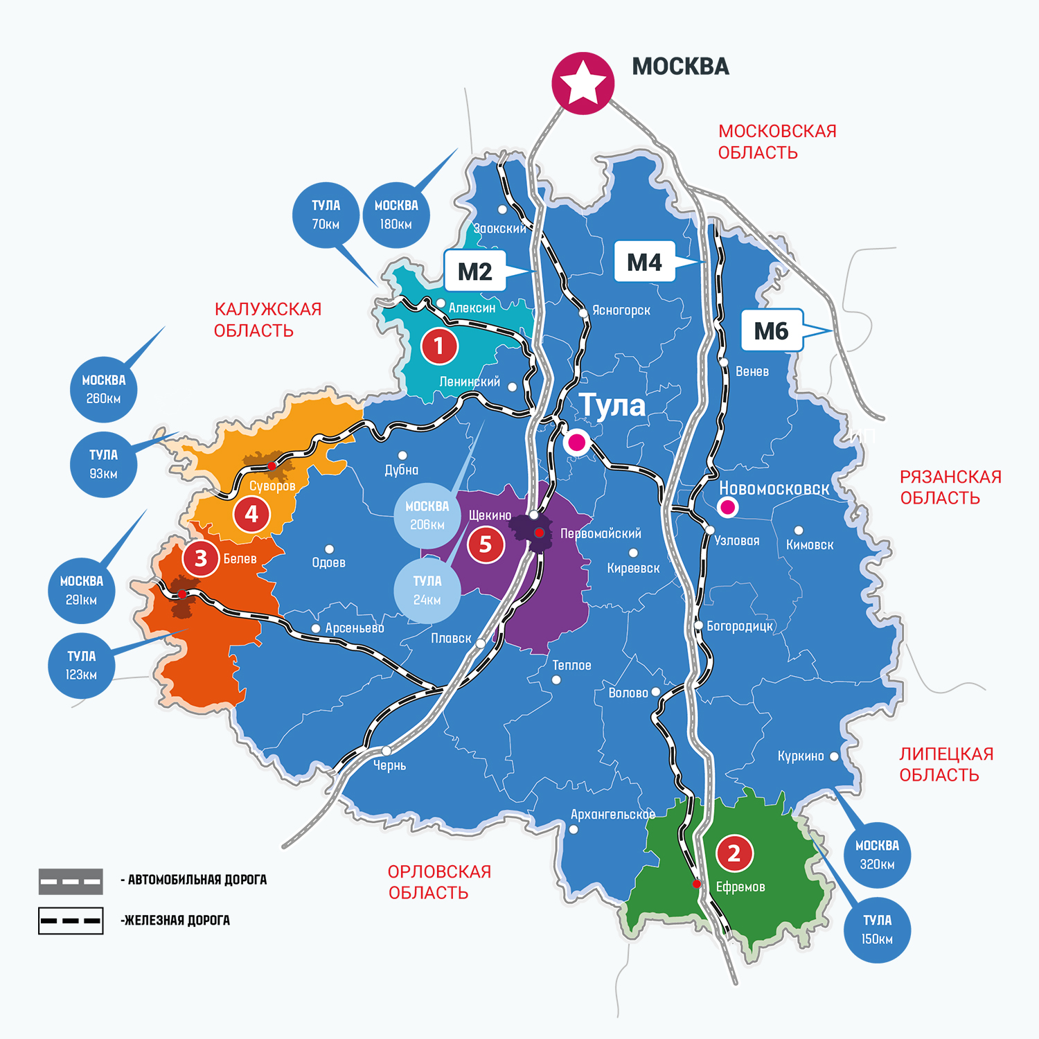 В Тульской области пять населенных пунктов, имеющих статус «моногорода», и все они претендуют на создание ТОСЭР, а Алексин и Ефремов уже получили это право. Ефремов стал первым в Тульской области моногородом, который приобрел все преимущества ТОСЭР.