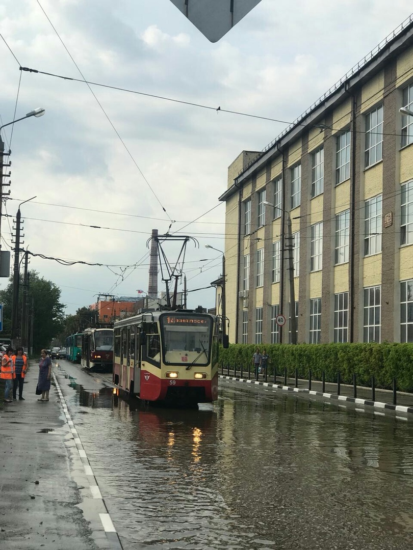 «И на море можно не ездить», — шутит тулячка, приславшая фото. По её словам, трамваи встали из-за большого скопления воды.