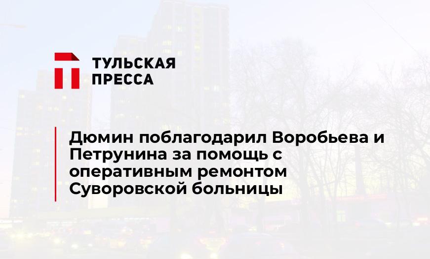 Губернатор поблагодарил жителей, которые жаловались на ненадлежащее состояние больницы, за активное участие в жизни района, а также отметил помощь спонсоров — депутата Тульской областной Думы Николая Воробьева и депутата Государственной Думы РФ Николая Петрунина. Они помогли привести больницу в порядок в сжатые сроки. Дюмин обратил внимание главы администрации района Геннадия Сорокина на необходимость своевременного информирования профильных министерств о подобных проблемах.